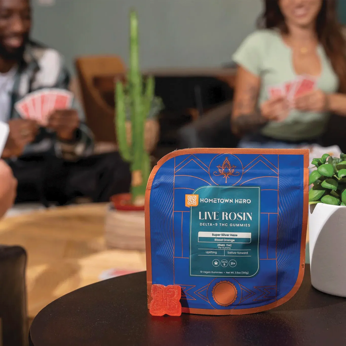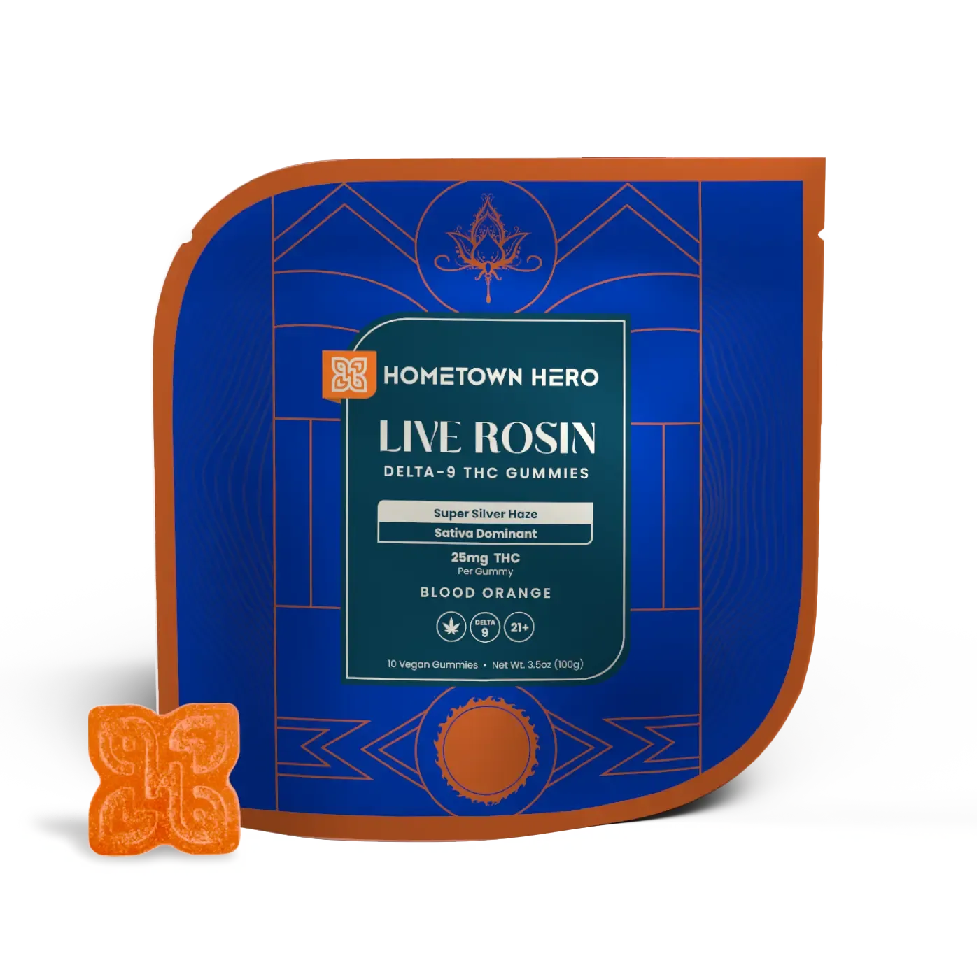 Delight in the citrus and floral undertones of blood orange in our artisan-crafted gummies. Each piece is infused with 25mg of Delta-9 THC and live rosin from Super Silver Haze for a revitalizing Sativa experience.